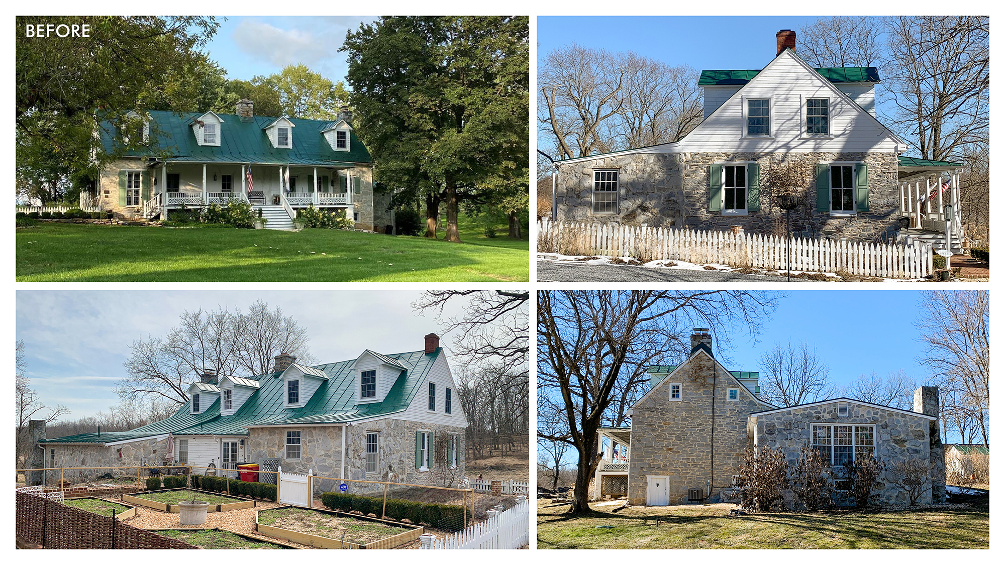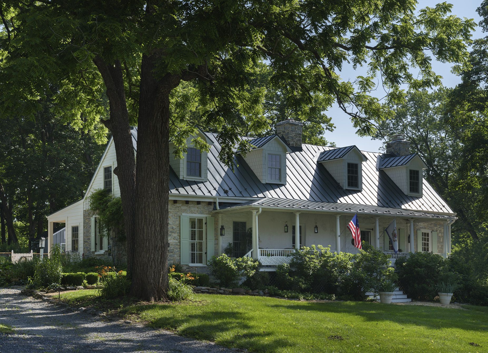 The original, eastern portion of the low, story-and-a-half limestone farmhouse was built in 1742. The house was enlarged on the western side at or near the turn of the nineteenth century. Historians believe there was an open dog trot between the two sections of the house, which was filled in after the house was used as an ordinary. The ordinary, known as White House Tavern, offered travelers food and lodging, and began operating right after the Revolutionary War. Front dormers were added to the house shortly after 1901 and rear dormers were added in the 1930’s. A kitchen and two baths were added in the 1950’s.